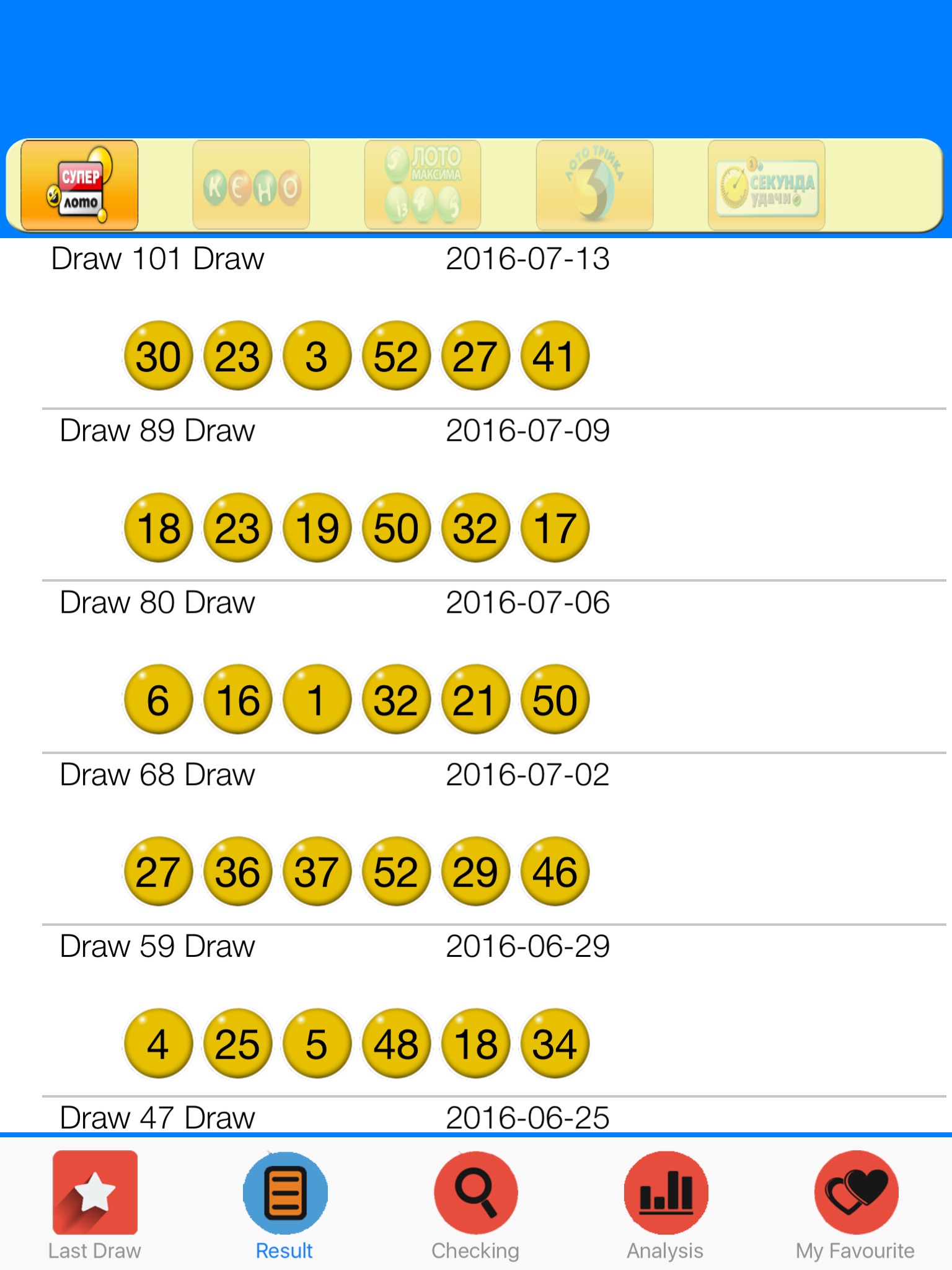 - Over 30 past draw results of Super Loto, Keno, Loto Maxima, Loto Triyka, Second of Luck.