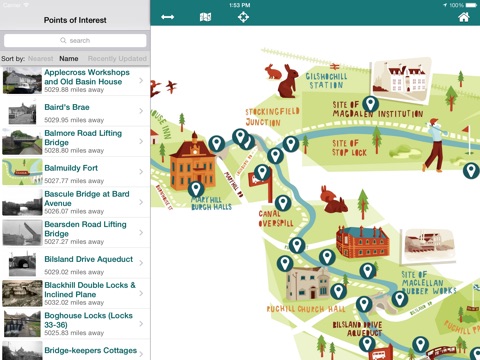 The new illustrated map features over 100 different points of interest to explore - tap on any point to find out more. You can also search for places of interest (e.g. Locks or Cafe), and even sort the list of places by how close you are, or how recently the information has been updated.