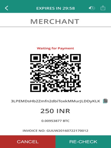 * Create the bitcoin address for payment and share it via SMS, Email, WhatsApp, Facebook, Twitter etc