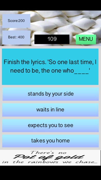 Answer as many questions as possible in 2 minutes. Get an answer wrong though and its game over!