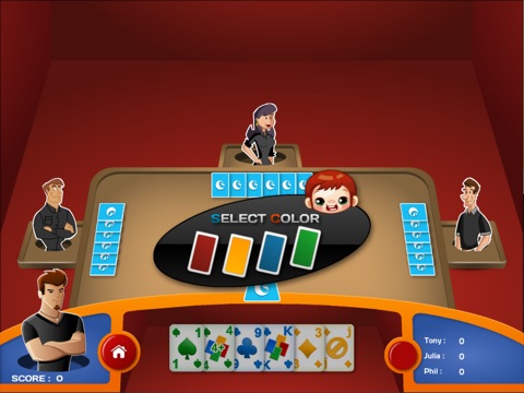 In UNOW , you can play against one/two/three computer controlled opponents. Each player starts out with 7 cards, and a random draw decides which player gets to start the game.