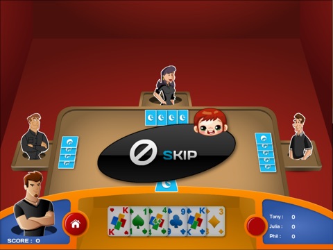 Skip Turn: The Skip Card can be played on other Skip cards and on any card of matching colour. When played, the next person in turn will be skipped. When this card is turned up as the first card in a game, the player who was supposed to start will skip that turn.