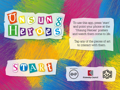 Knowlsey Adult Day Service users created beautiful collages to celebrate their local heroes. The Unsung Heroes augmented reality app brings their art to life with interactive visuals and sound effects created with the group. Tap and enjoy!