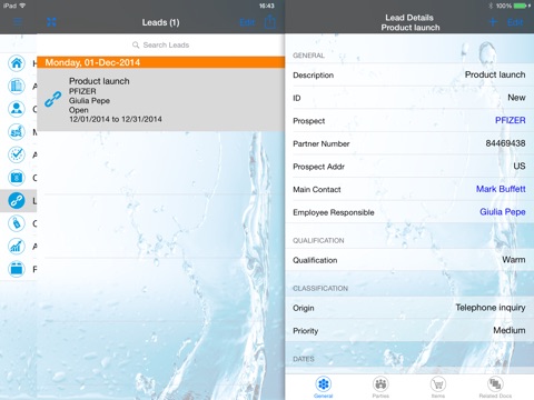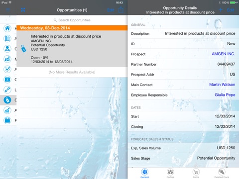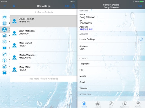 Access SAP CRM accounts, contacts, products, leads, opportunities and activities.