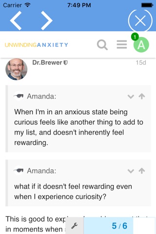 Within the Unwinding Anxiety app, you can expect daily guided lessons, in-app tools, community and expert support, and mindfulness exercises designed to help you manage anxiety.