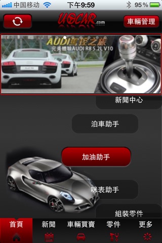 1)新聞中心:本APPS提供的新聞資訊種類包括試車報告,車壇快訊,車展資訊,賽車資訊和國際快訊;可通過下拉即時更新資訊列表,資訊詳細配備獨立的相冊接口,可以查看與此資訊相關的圖片信息,並支持facebook分享功能;