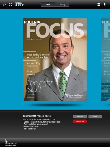 At your desk or on the go, stay connected to University of Phoenix alumni with the Phoenix Focus magazine app.