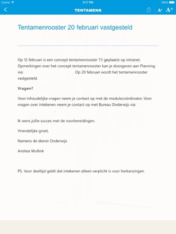 We willen daarbij zoveel mogelijk CAH Vilentum informatie (informatie van bureau onderwijs, administratie, directeur, etc. - dus geen module informatie) die voor alle studenten bestemd is via een e-mail nieuwsbrief, de up2date, laten verlopen.