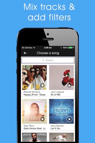 • Choose your own audio - either from up or down videos audio or from iTunes endless collection of songs!
