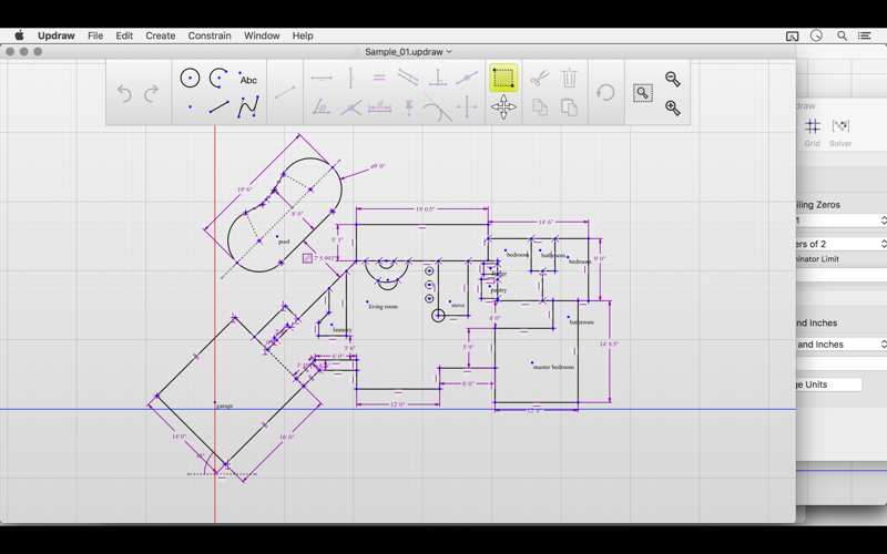 Updraw is the 2D CAD tool youve always wanted for your mac! It allows you to draw familiar shapes and add constraints to solve for unknown distances and angles.