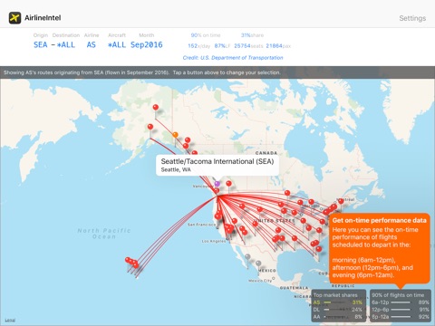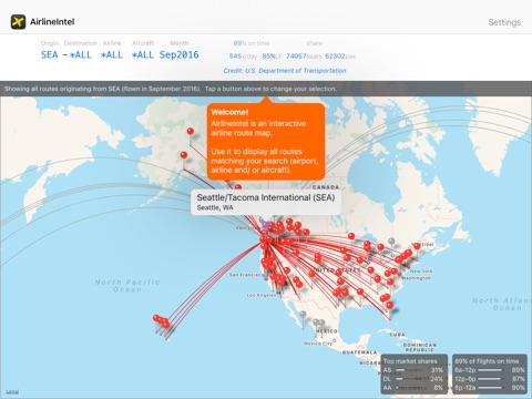 AirlineIntel is an interactive, multi-airline route map. It includes market data for all airline routes flown within, into and out of the United States.