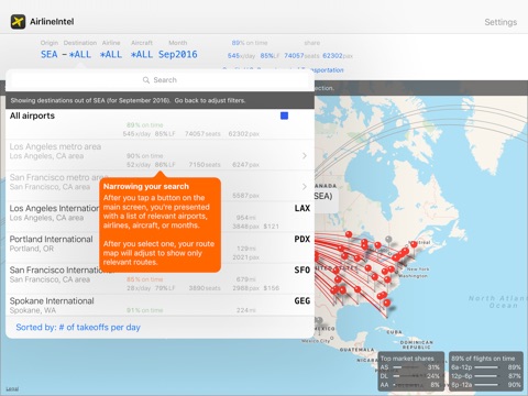• Market intelligence - Visualize market supply and demand for any US city - or any route within, into and out of the US.