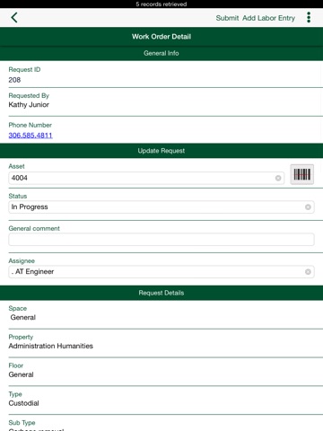 Facilities Management app for the University of Regina. This app enables employees to view work orders, update work orders, charge labor, request parts, search for work order and view the status of shopping carts.