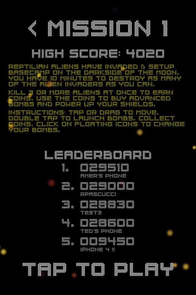 The instructions are simple. Single Tap or Drag to move your player, double tap the screen where you want to send your bomb. Avoid hitting Skull bombs and pick up red hearts to power up.