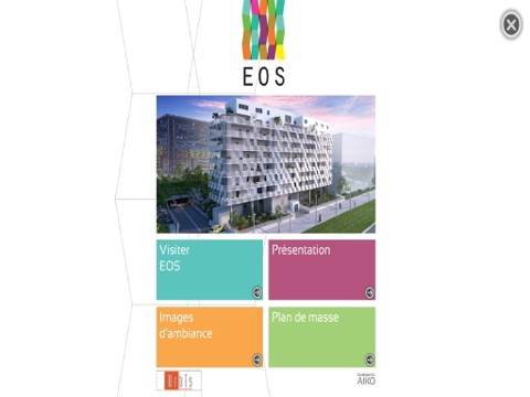 Cette application, développée par Âiko, vous permet de visualiser le futur immeuble EOS, du promoteur Urbis, en 3D. Vous pourrez ainsi visiter virtuellement le quartier, le bâtiment et les différents types de biens qui le composent, afin d’être totalement immergé dans les futurs logements.