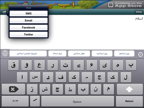 This application allows you to write in Urdu language using your iPhone keyboard and send it via email or SMS. But that’s not it; since we all like to be social, we have integrated Twitter and Facebook sharing with this app, so you can all blast those social media with Urdu updates.