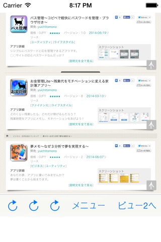 ランキングサイトの自分のアプリのURLなどを複数登録しておくことで、ランキングを一目で一括確認することができます