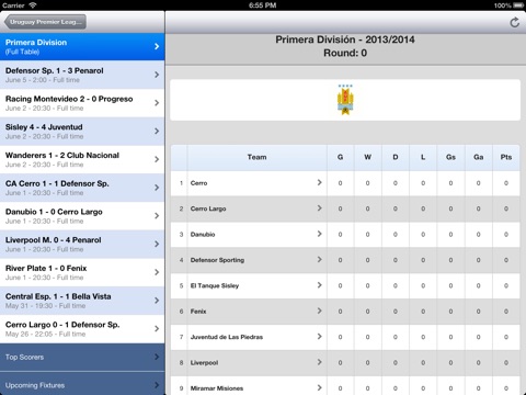 With this app you can also check all the stats for all the teams in the Uruguayan Soccer League competition (Peñarol, Nacional, Defensor Sporting, Montevideo Wanderers, Danubio F.C., Santos Laguna etc.)