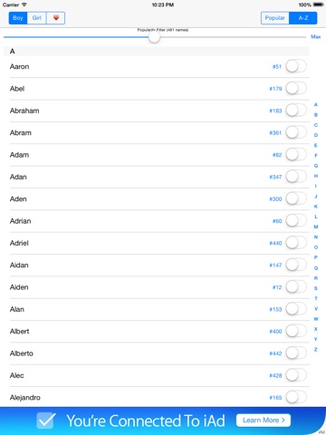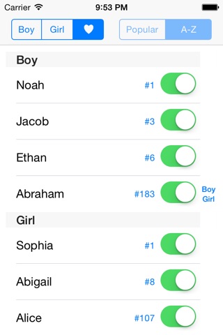 2. Names can be listed by popularity and alphabetically