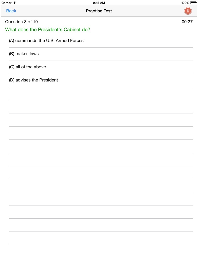 Intended to be plain simple and easy to learn; By using the app, you not only study fast, but also finish the real test as quick as possible. Keep practice makes perfect!