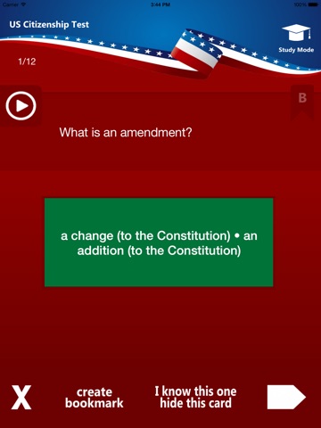 This high-quality app helps you to prepare for the actual UCSIS Civics test with a study mode and an exam mode. The questions are based on USCIS latest prep document and are presented in random order. You can choose if you want to answer 10, 20, 30 or all questions.