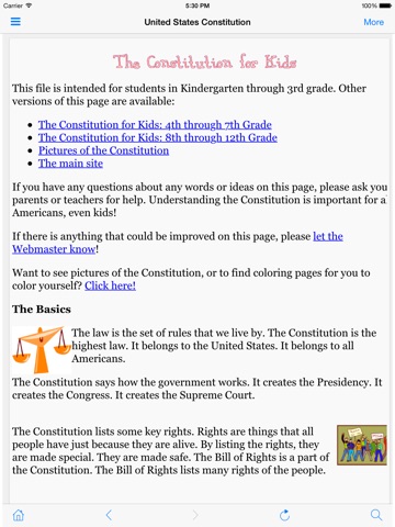 Have a complete version of the United States Constitution at your fingertips at all times. This U.S. Constitution app includes the complete text, in-depth analysis and history and special easy-to-understand versions and interpretations for children and young adults.