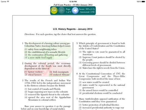 Prepare for the U.S. History Regents exam by practicing with actual Regents exams. The app includes the multiple-choice questions from 10 actual U.S. History Regents exams.