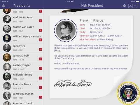 - Also understand president born date, died date, born name, in office year, vice president name, jobs before and after presidency