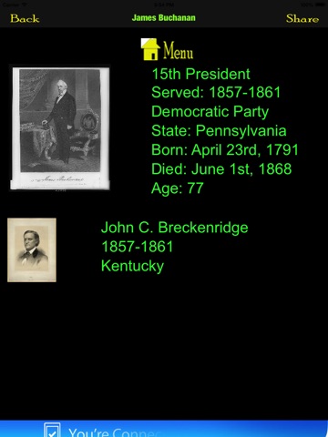 An educational app for both Students and Teachers to explore the various facts when learning the U.S. Presidents with the ability to Search and share the info using E-mail or SMS Text. Some of the data inludes: