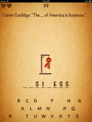 This Hangman specialies in quotes from popular to profound ones. When finishing a saying, you will find meaningful things in life and see how a President think about the life.