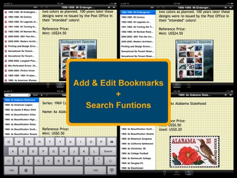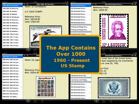 The United States Stamps Collection Bible Vol.2 is an application containing 1100 US stamps from 1960 - present time (for U.S. stamps prior to 1960, please purchase Vol.1 of this app). It is an excellent app for people who love stamp collecting and those want to determine their old stamps second hand value. For each stamp, the following information is included for easier reference: