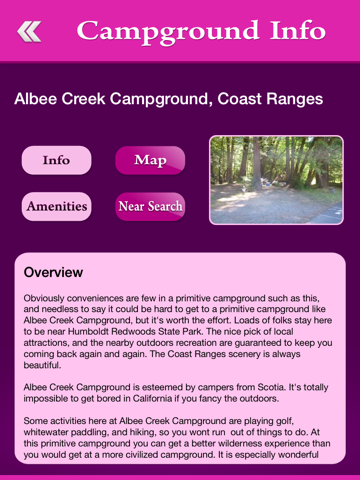 Campground Info # Amenities # Address # Description # Map # Directions # Pictures # Near Search # Route Map