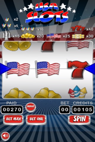 USA Slots is the Hot New Slots Machine game with awesome USA Flags, Statue of Liberty, Freedom Bells, and more! Place your bets, spin and win!