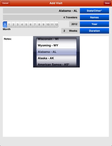 Have you traveled to any US states recently? Would you like an easy way to keep track of your state visits over the past and future years? This app keeps track of the states that you and other family members and friends have visited, and also allows input of optional details that should be useful to you in the future. Includes the following features: