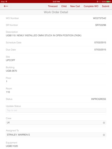 Facilities Management Services app for University of Southern California. This app enables users to submit requests for services, view work orders, check on the status of requests, update work orders, charge labor, request parts, and search for assets.