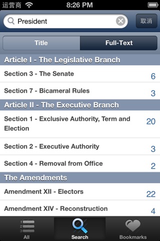 Decent app except missing the 25th Amendment and faulty search function.
