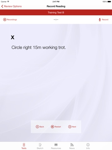 • Play and record your own readings of the test that are perfectly timed for the individual horses and the arena in which you are practicing