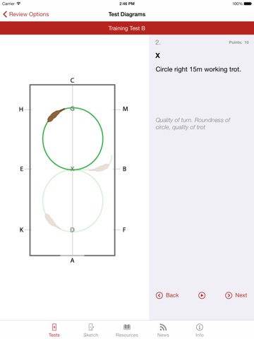 • Review dressage arena diagrams that animate through the movements within a test