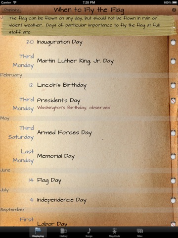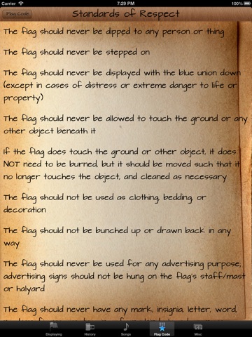 When should the flag be flown at home? Where should the flag be placed on stage in relation to a speaker? Should the flag be draped over a podium? How was the US Flag of WWII different from todays flag? What are the words to the second verse of the Star Spangled Banner? What are the only two states to be admitted to the union (thus adding stars to the flag) on the exact same day? What RGB color values should be used when drawing the flag on a computer screen? How should the flag be folded for display?