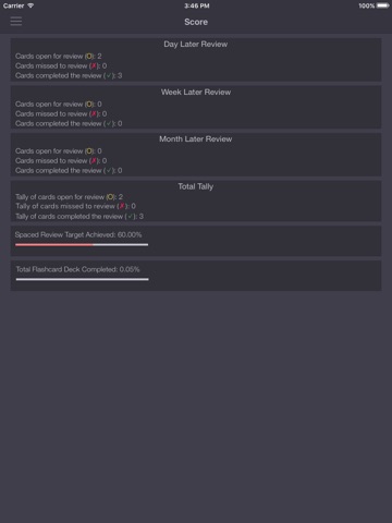 ● Spaced Review Score – Instant updating score system based on spaced review target achieved or missed.