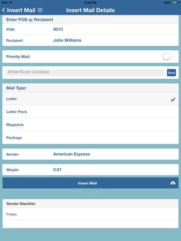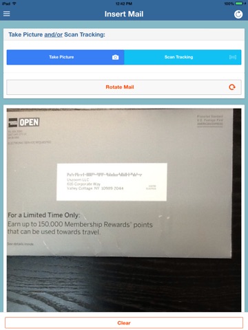 - Take pictures of incoming mail and submit them for auto insertion, enter details manually, or just upload them to the cloud for later processing.