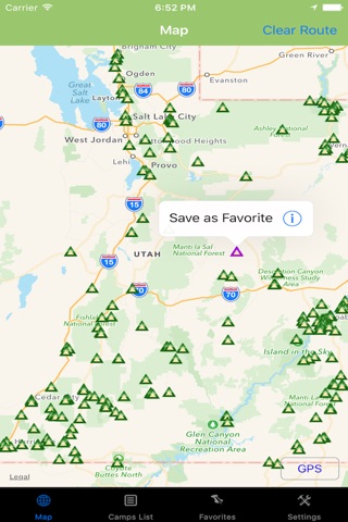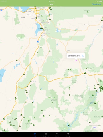 Utah Camping spots & RVs is a simple and easy to use map to find the nearest Campsites or RV Park locations.