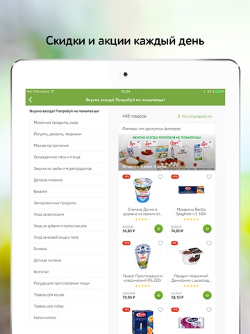 Приложение удобное в сравнении с другими аналогичными приложениями на доставку продуктов. Хорошо реализована форма поиска вне каталога (по запросу) - большой плюс.