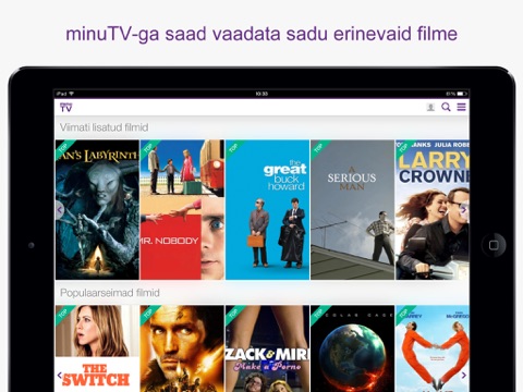 Uue MINU.TV äpiga on kogu meelelahutus sinuga kõikjal kaasas - vaata filme, sarju, lastesaateid, telekanaleid ja salvestusi. Nii telefonis, tahvlis kui ka arvutis ja just siis kui soovid.