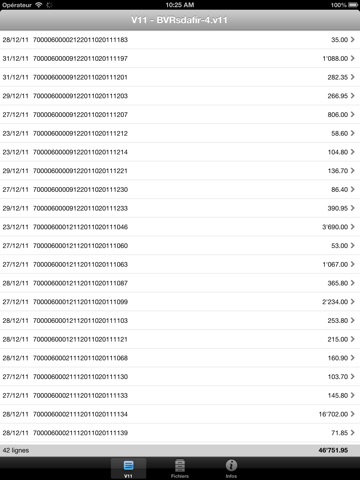 Pour cela, il suffit de "cliquer" sur le fichier dans Mail ou dans Safari et de choisir "Ouvrir dans V11". Vous aurez instantanément une vue sur les opérations comptables ainsi que leurs détails et la somme des opérations.