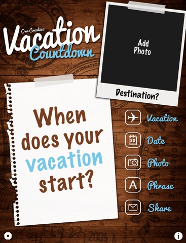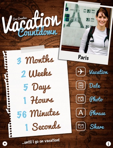 Countdown to the day you go on vacation with this great Vacation Countdown app.