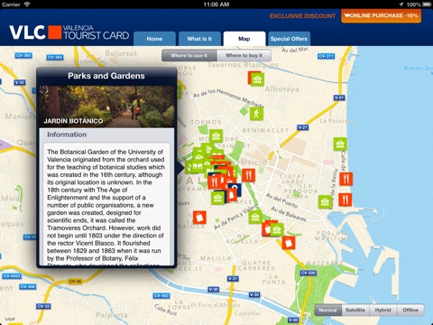 Check our map to see all the places that offer discounts with the Valencia Tourist Card, like FREE entry to public museums and monuments and more than 130 tourist services, leisure activities, shops and restaurants with discounts of up to 50%.