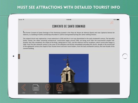 Tourist info for must see attractions such as Distrito de Ciutat Vella, Convento de Santo Domingo, Santa María Cathedral, El Miguelete, Plaza de la Virgen, Basílica de la Virgen de los Desamparados, Palace of Justice, Palacio de la Generalidad Valenciana, Town Hall Square, Casa Consistorial, Central Market, Torres de Serranos, Lonja de la Seda, Santos Juanes Church, Torres de Quart, Palacio del Marqués de Dos Aguas, Palacio de los Borja, Jardín del Turia, Queens Square, among others.