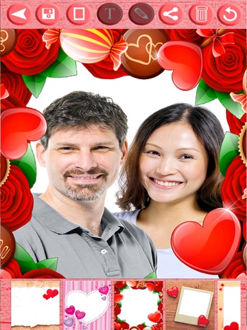 Choose photos from the gallery or take a picture with the camera and frame it in a nice love frame and make amazing collages or montages of photos. You can decorate your romantic love photos with your husband, boyfriend, lover or the guy you like to turn them into beautiful love pictures for love and romantic relationships.