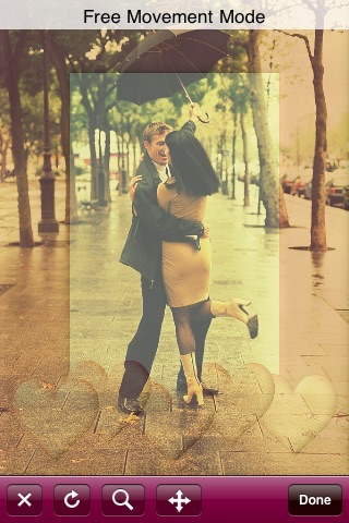 - Pinch n Zoom and Move your photos around to line them up with the Frame then simply press done!